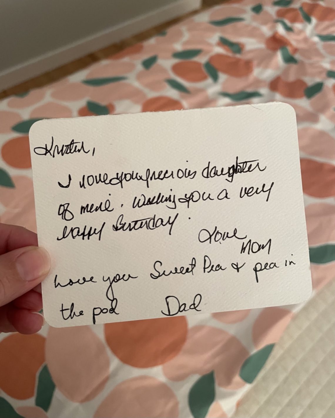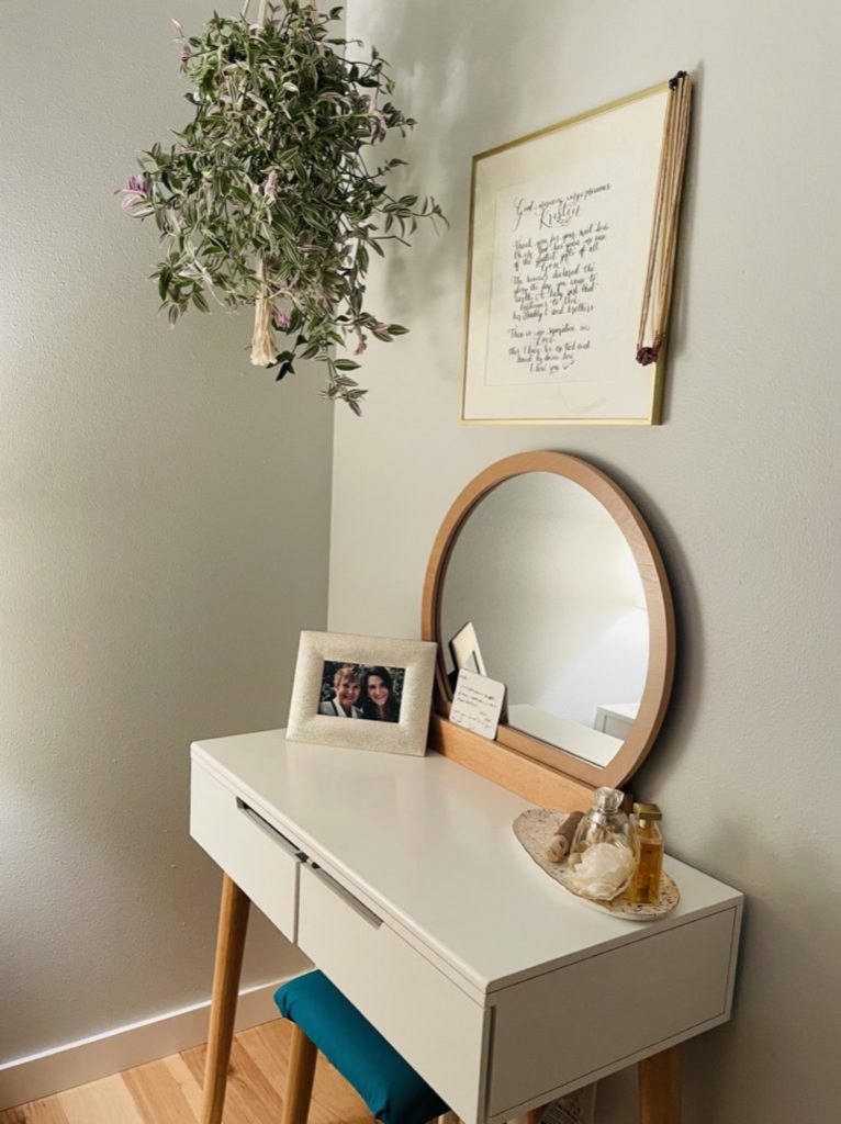 The note you see above (and below on my vanity) was written in 2006 – I was 5 months pregnant with my daughter and my parents were thrilled to have their first grandchild on the way. This note sits on my vanity and I read it every morning when I am getting ready for the day- it’s a nice reminder that I am precious, loved, and cherished. Last year on my birthday I missed my Mom’s call, we were exploring a beautiful botanical garden and hiking in the rain. Her voicemail from that day is the only one on my phone now, at the very end she says “Wishing you a joyous, happy happy day.” Hearing her voice and listening to her message makes me cry – my love for her is never ending.