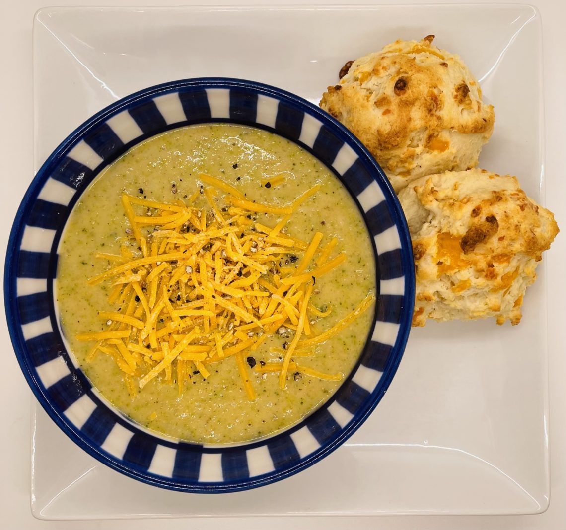 Healthy Broccoli Cheddar Soup with Homemade Garlic Cheese Biscuits