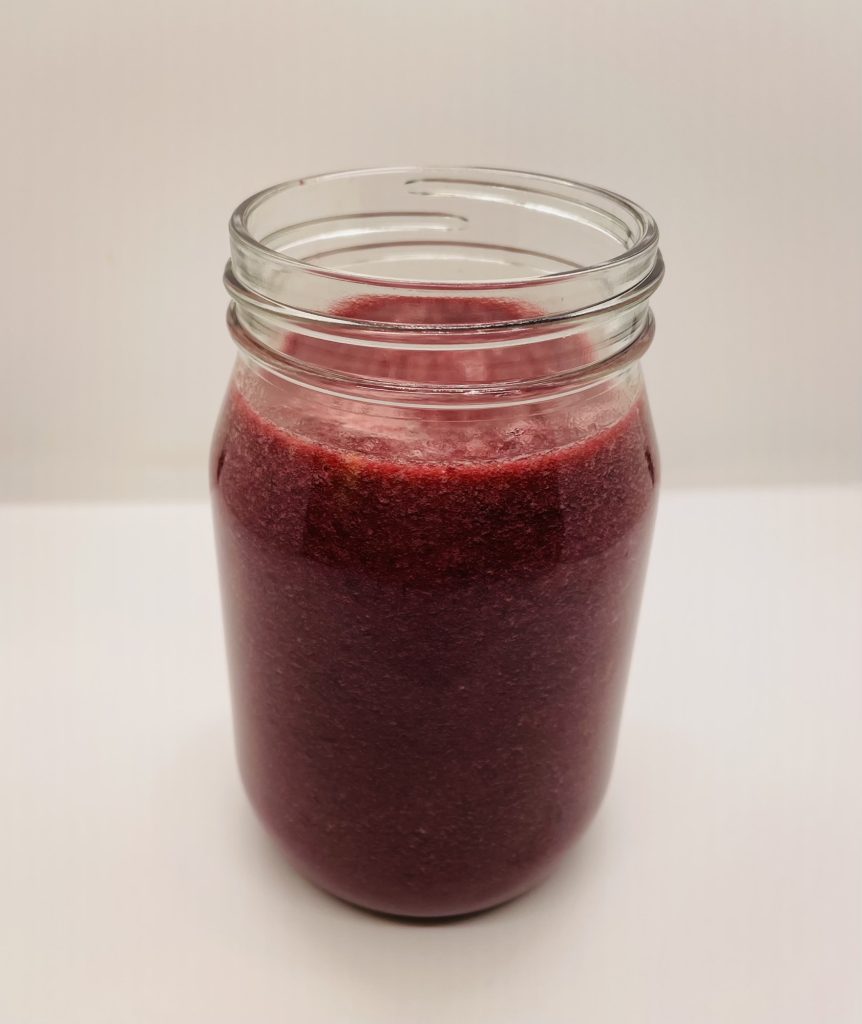 Step Two: Once the cherry simple syrup is cool put it into a blender (or nutribullet) and mix well.