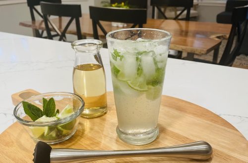 Step One: Fill your glass with ice and then the club soda. Add in the cherry simple syrup and mix well. You can add more/less of the cherry simple syrup depending if you like it more/less sweet.
