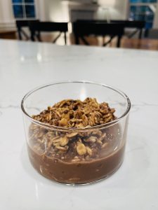 Note: Again, I like to serve my overnight oats warm so I put the bowl in the microwave for ~30 seconds before I add the walnuts and cocoa nibs.