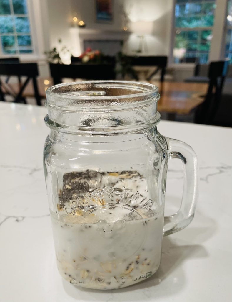 Making your overnight oats in a glass jar is really helpful if you need to get out the door in the morning or if you are serving these while camping/sailing/on the road.