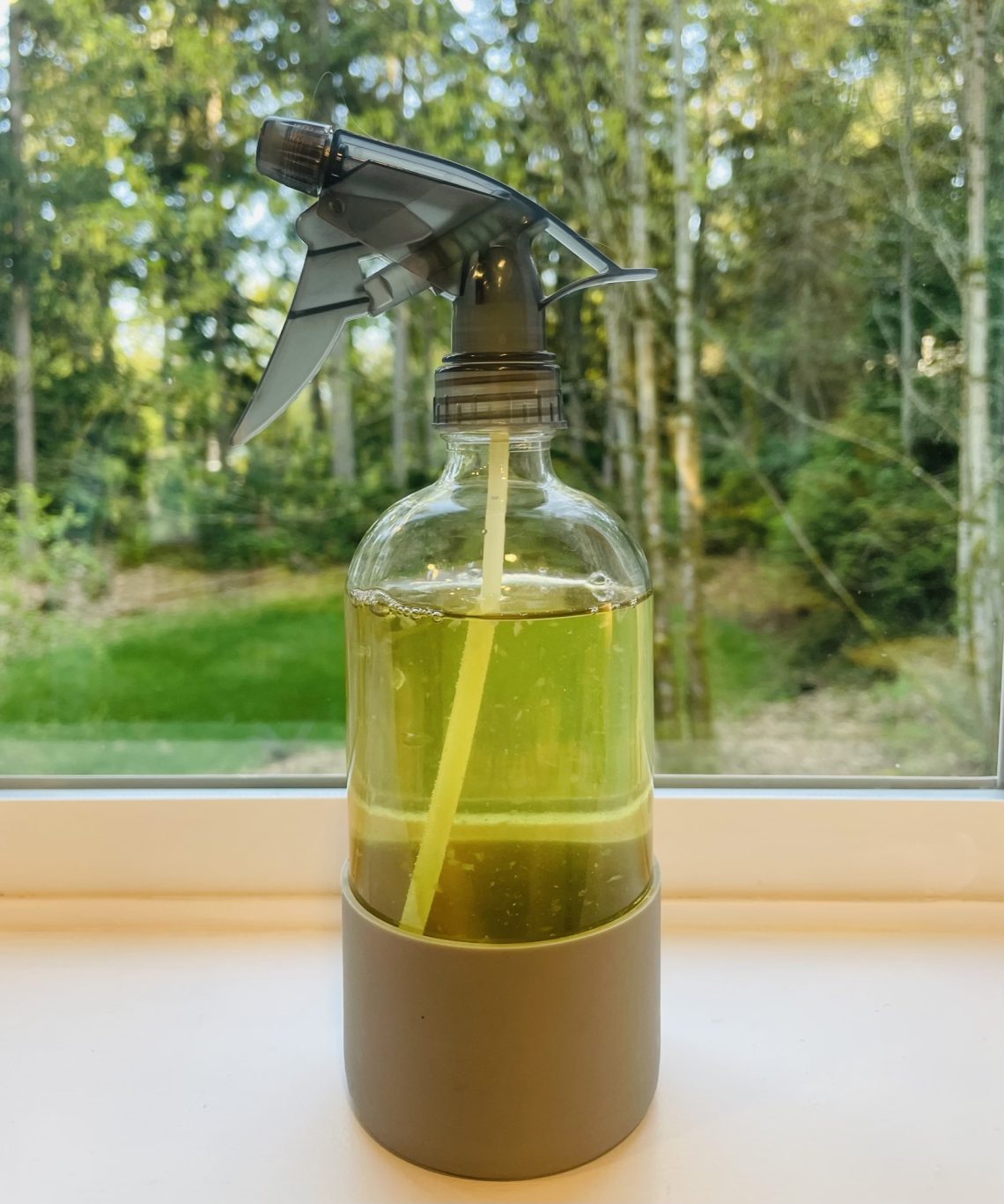 Step Four: Put your all purpose citrus cleaner in a glass spray bottle and use as needed. I love to use this on my kitchen countertops.