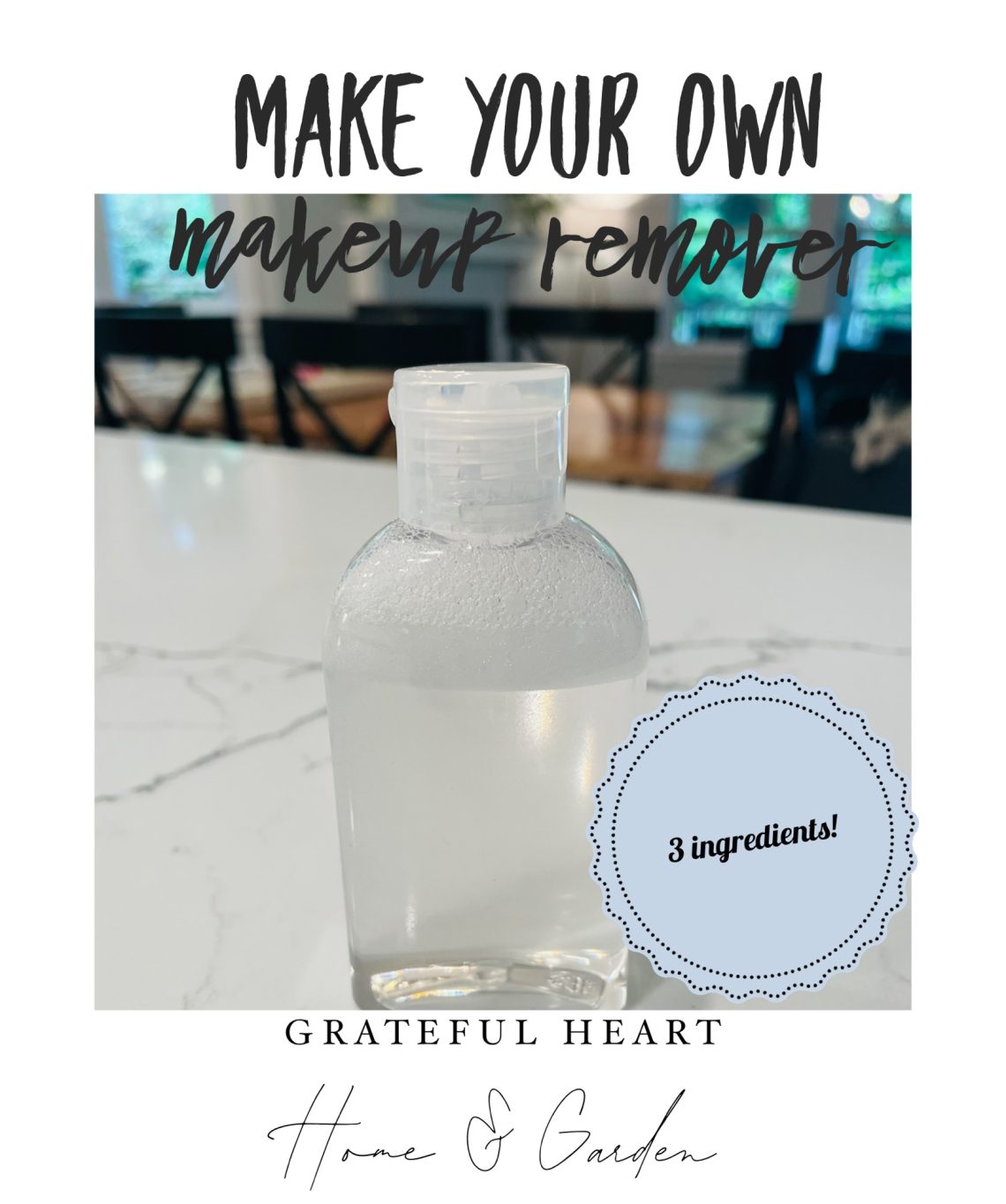 Homemade Makeup Remover – I’ve been making this for years (15+) and it’s still my favorite go to make-up remover. I use this on my eyes to take off eyeshadow, eyeliner, and mascara. I use my favorite toner for the rest of my face. You just need three simple ingredients…