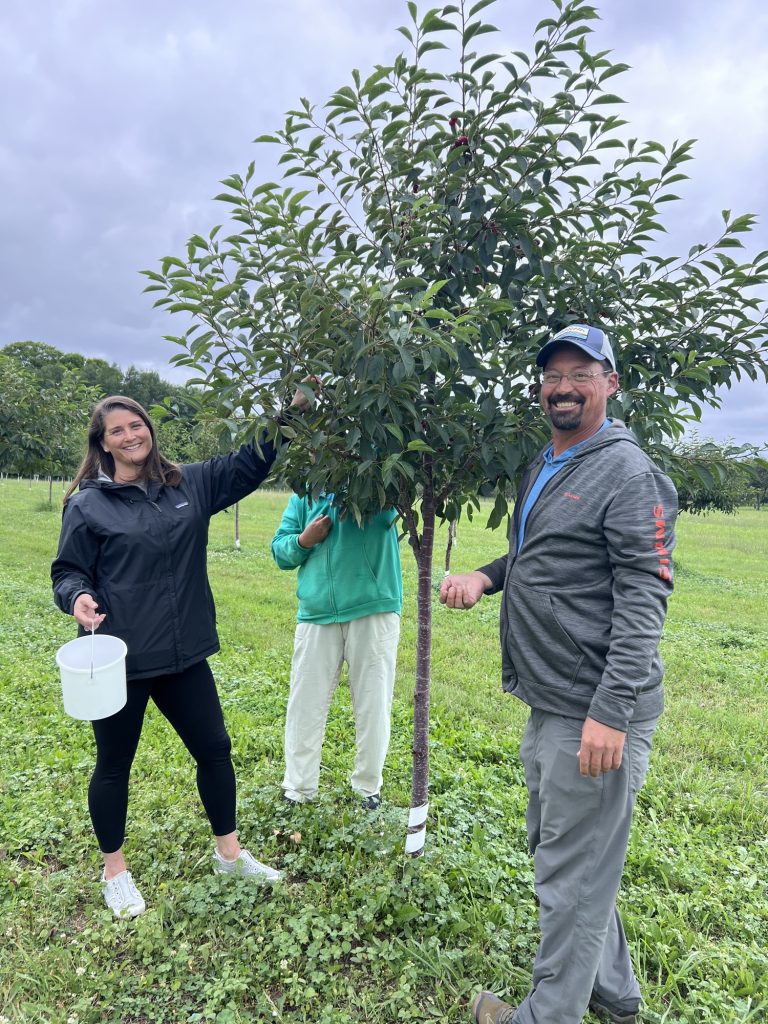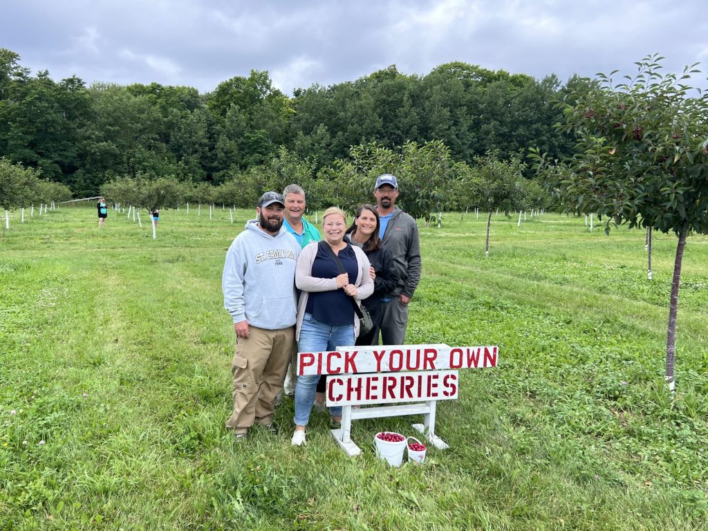 This past summer I was able to go with my Dad, two brothers, and my sister-in-law. For the first time we were there during the peak of cherry harvest season (mid-July through early August)! I gathered up the crew and we headed out to pick cherries so I could make cherry almond jam (see recipe below).
