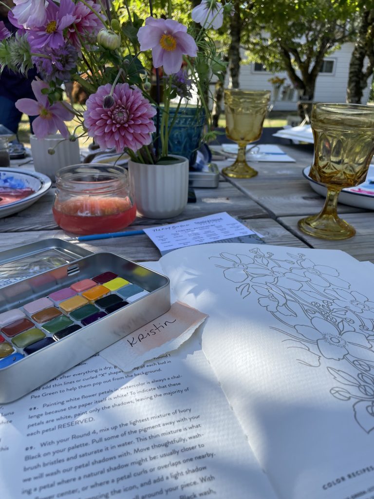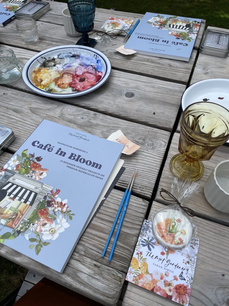Learning how to watercolor was very relaxing and stress free – I was okay with making mistakes and learning by trial and error as I worked on my initial project. My daughter loves to paint so I picked up an extra workbook for her which Sarah signed. We’ve enjoyed painting together on Sunday afternoons for the past several weeks!