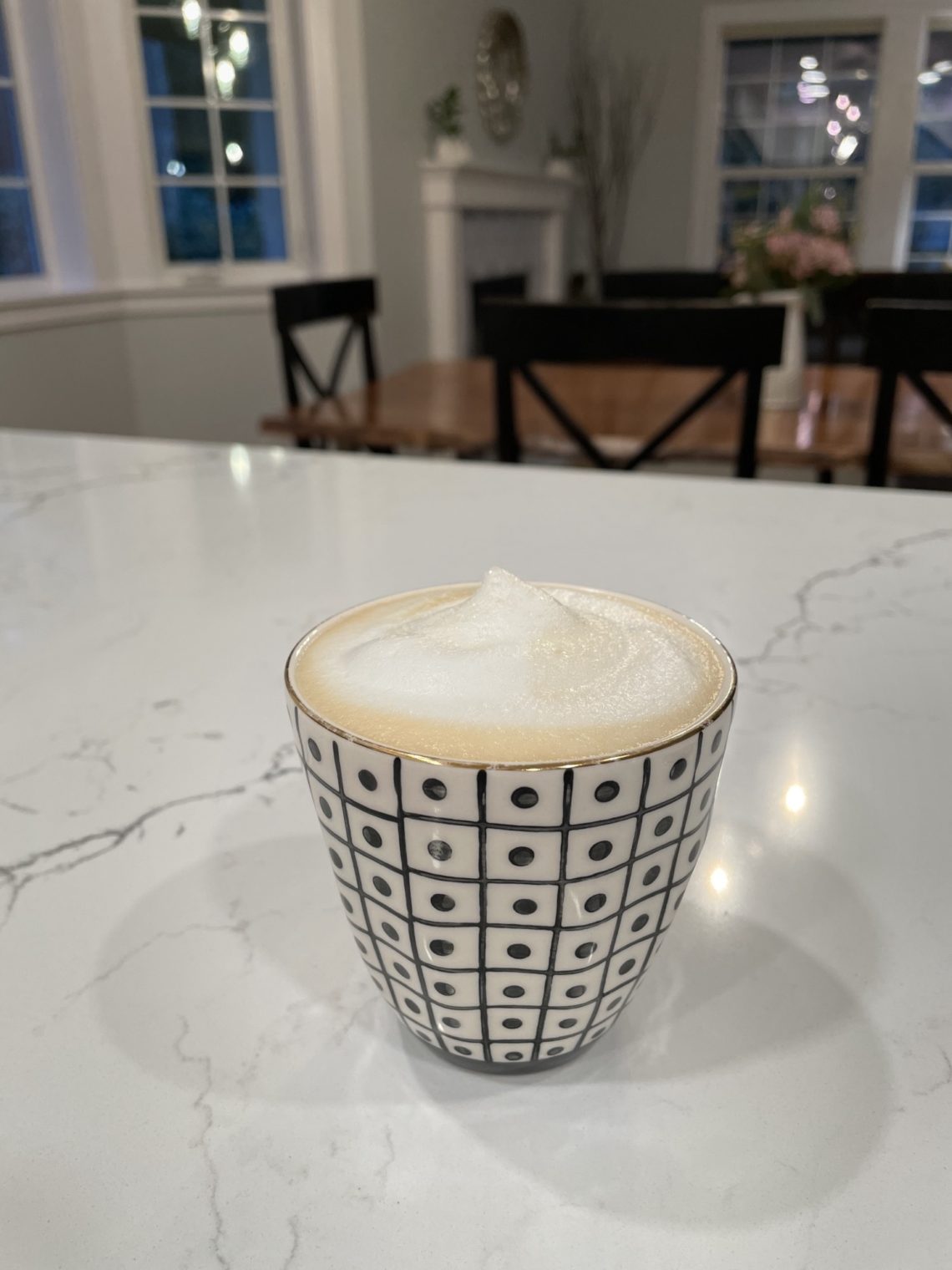 Step Three: Pour the steamed milk into your coffee and then spoon the milk foam on top.