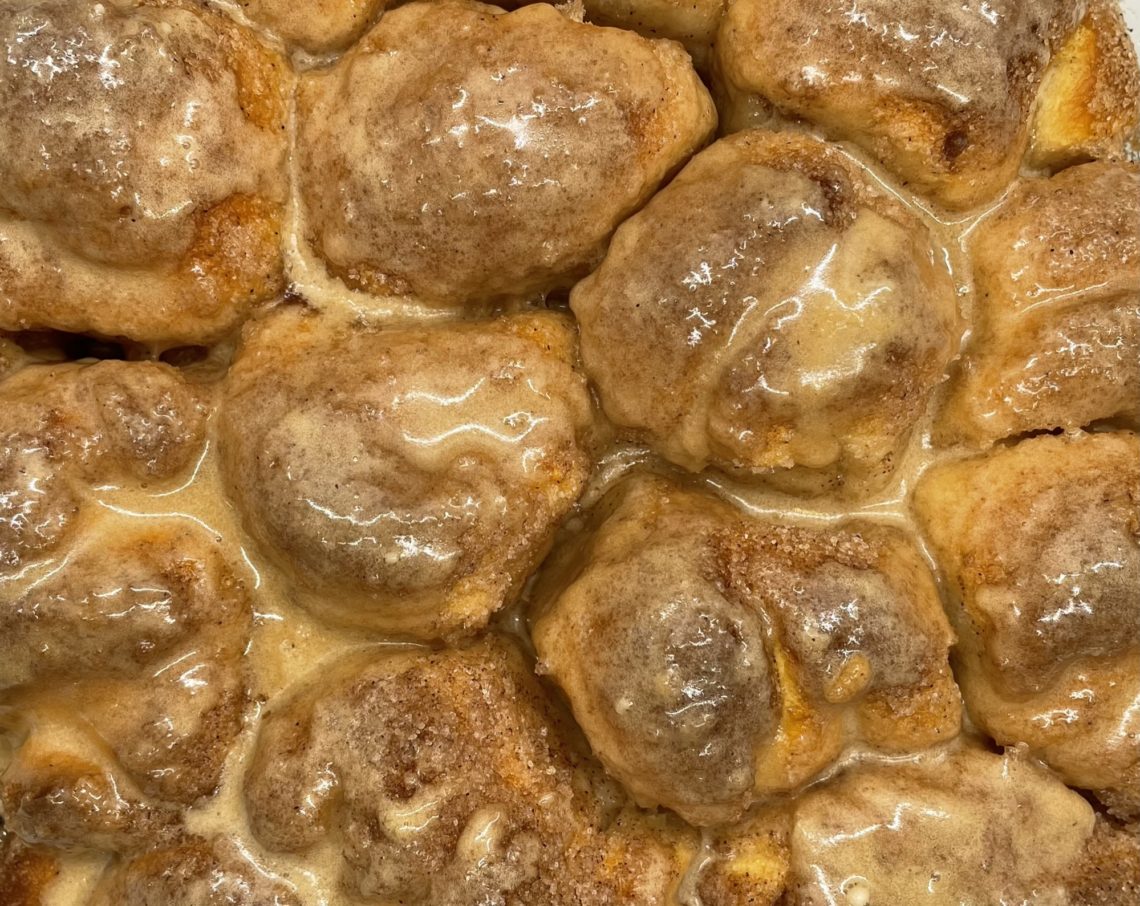 Step Six: When the cinnamon rolls are done pour the frosting over the top. Let cool for 5 minutes then enjoy!