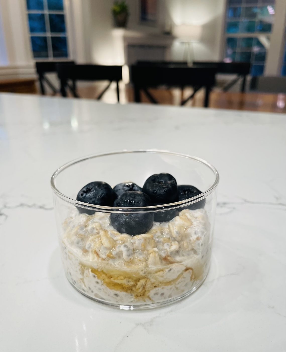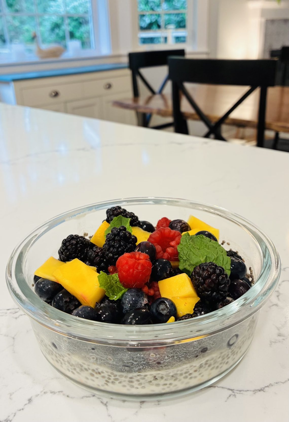 The author shares a new morning staple: overnight chia seed pudding, ideal for busy schedules. Made with milk, Greek yogurt, chia seeds, honey, vanilla, and optional citrus zest, the recipe yields four servings. Topped with fresh berries and agave, it offers a healthy, quick breakfast option for commuters.