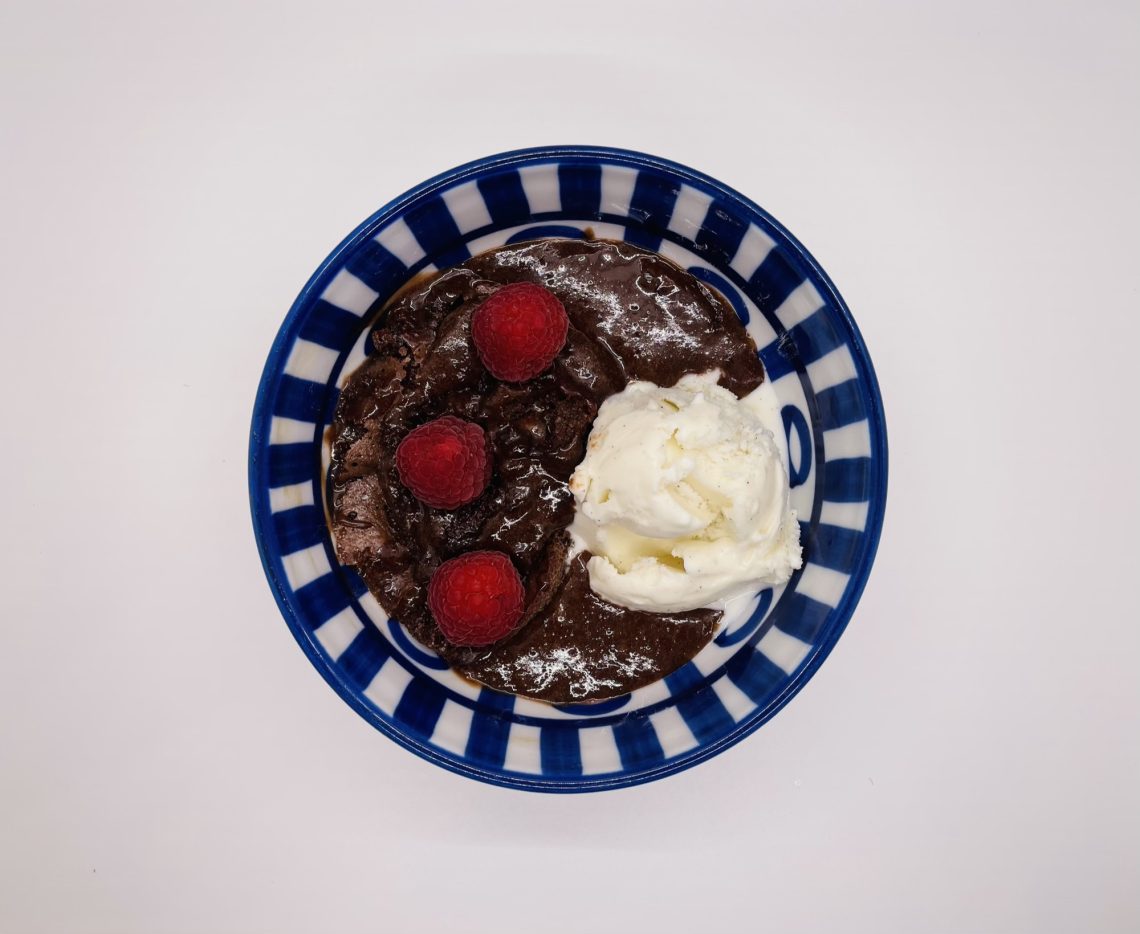This is a “fancy” dessert you can make with just a few minutes of prep time. I serve this regularly when we have friends over for dinner. This recipe has just 5 ingredients and is sure to impress your guests. Serves 4. Ingredients: 1/2 cup butter 2 tablespoons flour 2/3 cup bittersweet chocolate chips 2 large eggs + 2 large egg yolks 1/4 cup of sugar Serve with a scoop of ice cream (optional) Step One: Preheat your oven to 450 degrees. Step Two: Spray four 6 oz. ramekins or glass bowls. I find that using Baker’s Joy or a cooking spray that has flour works best – this will…